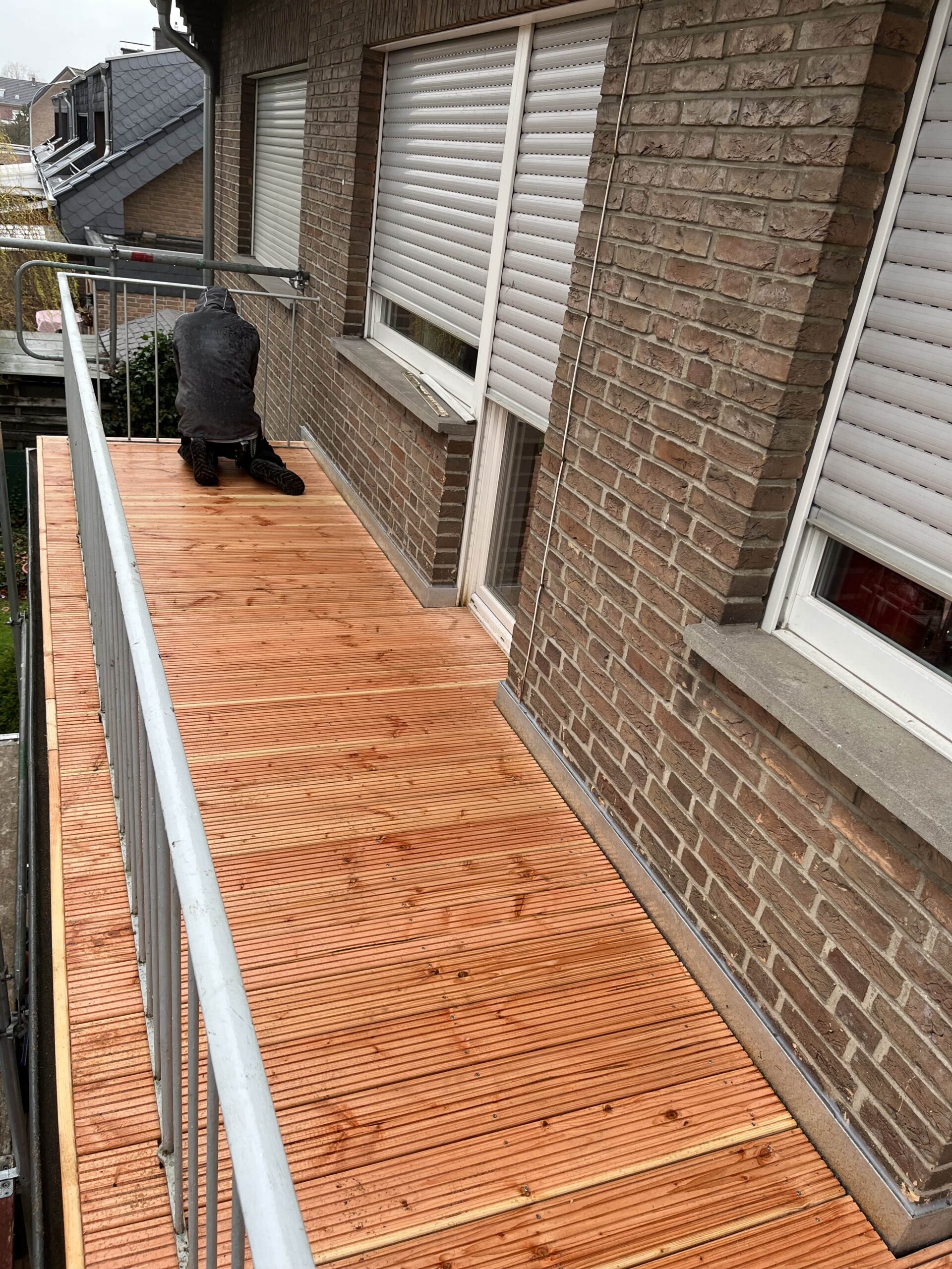 Balkonsanierung: Bankirai-Dielen und Trittschutzbleche