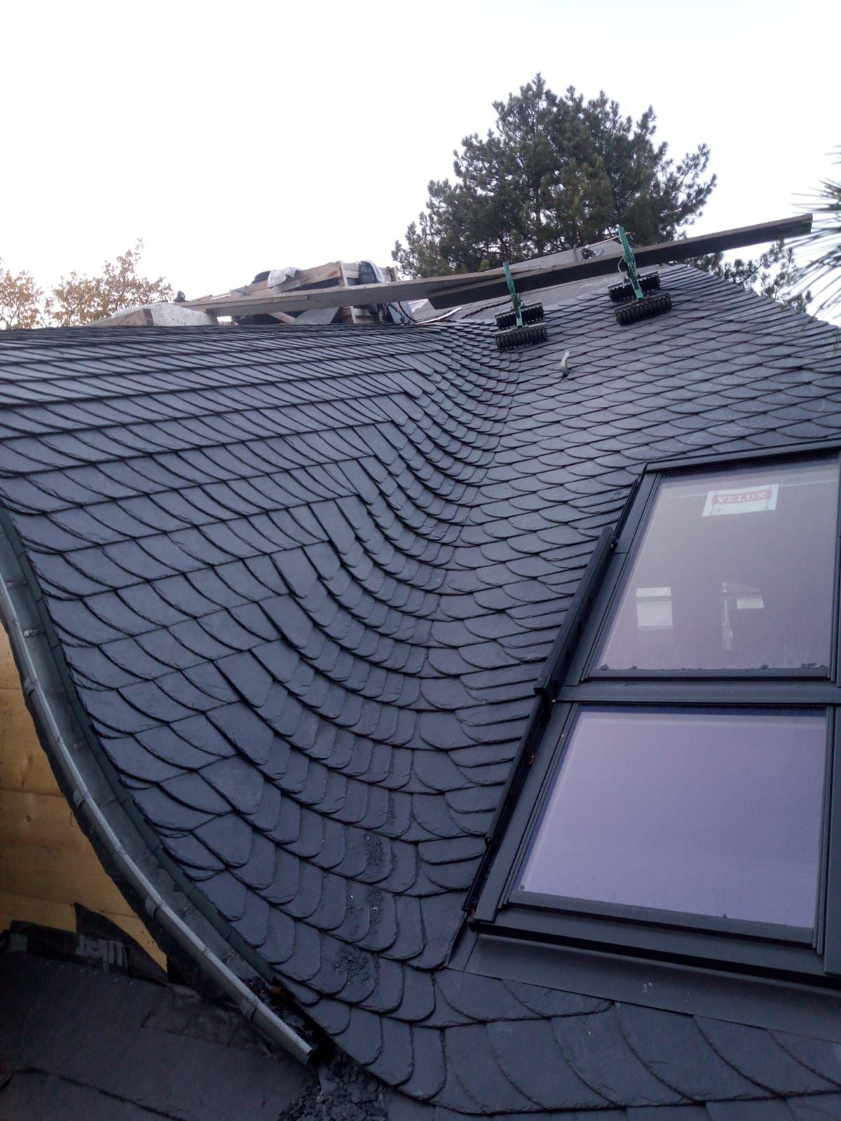 Energetisch saniertes Schieferdach mit Fledermausgauben und Kamin